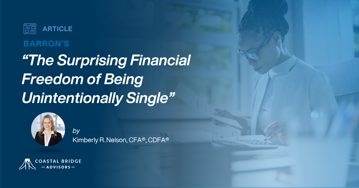 The full article from Barron's was published on 11/6/25 and can be found here: Barron's: The Surprising Financial Freedom of Being Unintentionally Single.  This material by Coastal Bridge Advisors is for informational purposes only and is presented solely as an illustration of the typical advisor experience. Coastal Bridge Advisors does not provide tax or legal advice, and nothing contained in these materials should be taken as tax or legal advice. Unique client experiences and past performance do not guarantee future results.